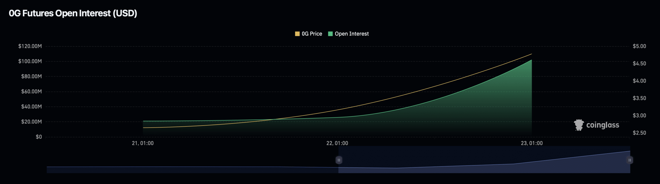 As of publication, 0G was worth $1.26 billion in market capitalization, following a 21% price climb to $5.29.
