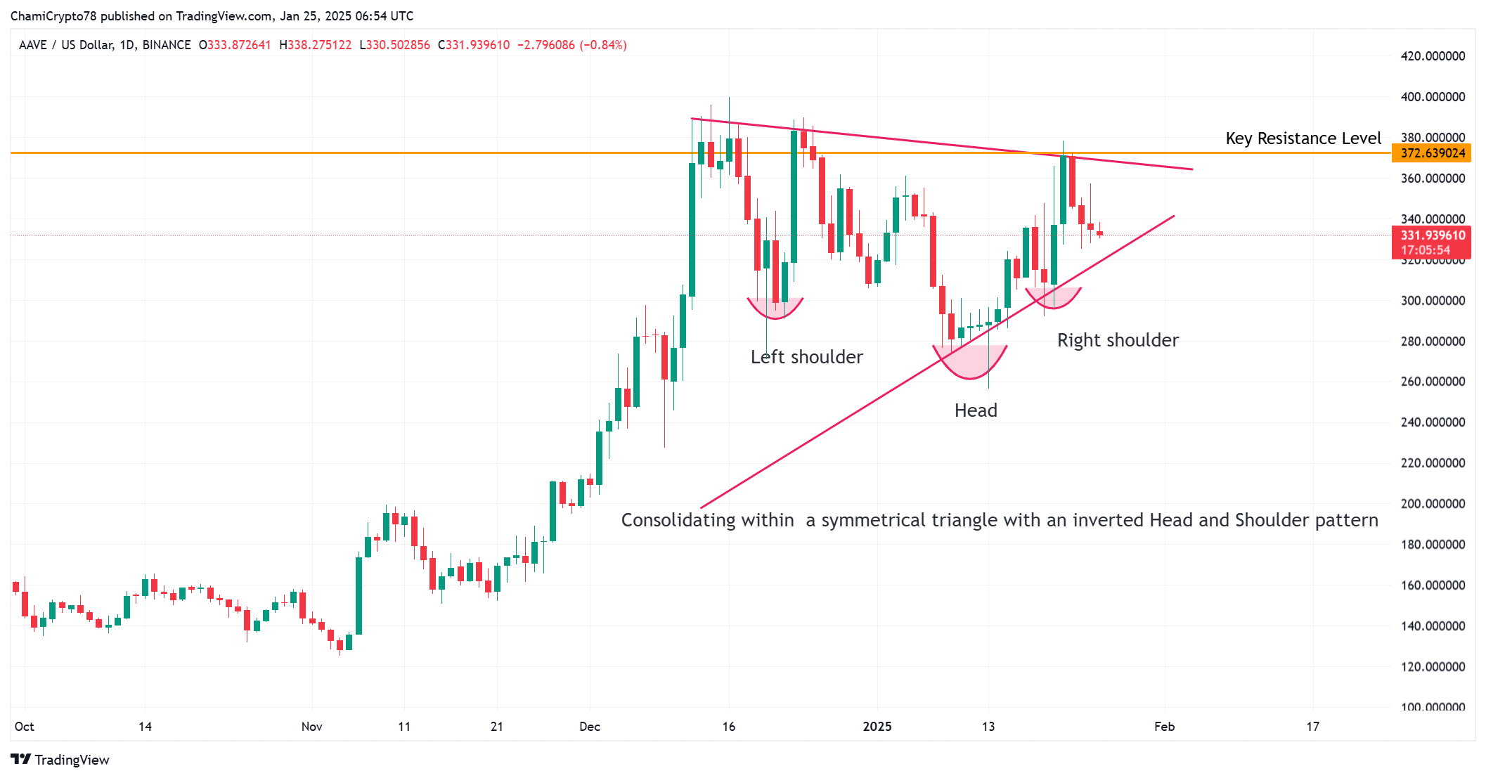 Right now, the whale holds 11,637 AAVE ($3.87M), hinting at a strategic reduction in exposure. At press time, AAVE was trading at $333.10, following a 3.91% decline over the last 24 hours.