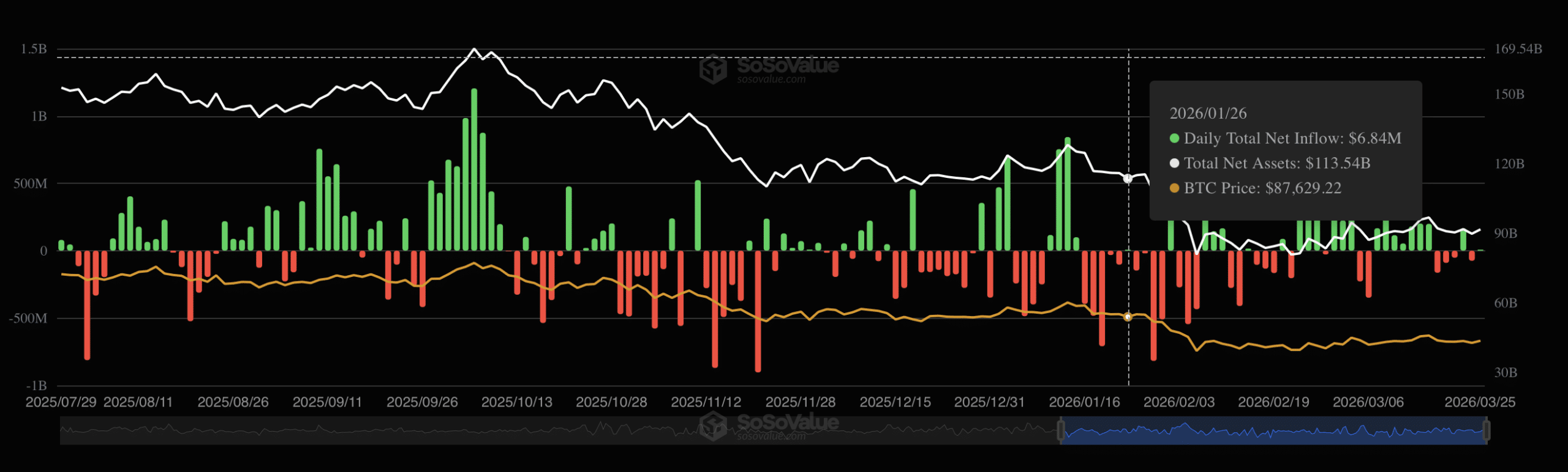 This marks the third time inflows have reached minimal levels, and the second-lowest reading of the year. It sits between the 26 January inflow of $6.84 million and the 13 February inflow of $15.20 million.