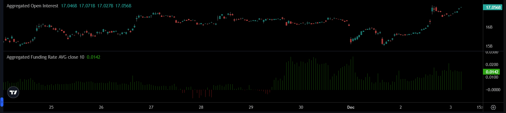 Although the broader trend has yet to reverse, derivatives data showed a contrast. At press time, the Open Interest (OI) was elevated above $17 billion. The Funding Rate was slightly positive, so traders probably anticipate an upside.