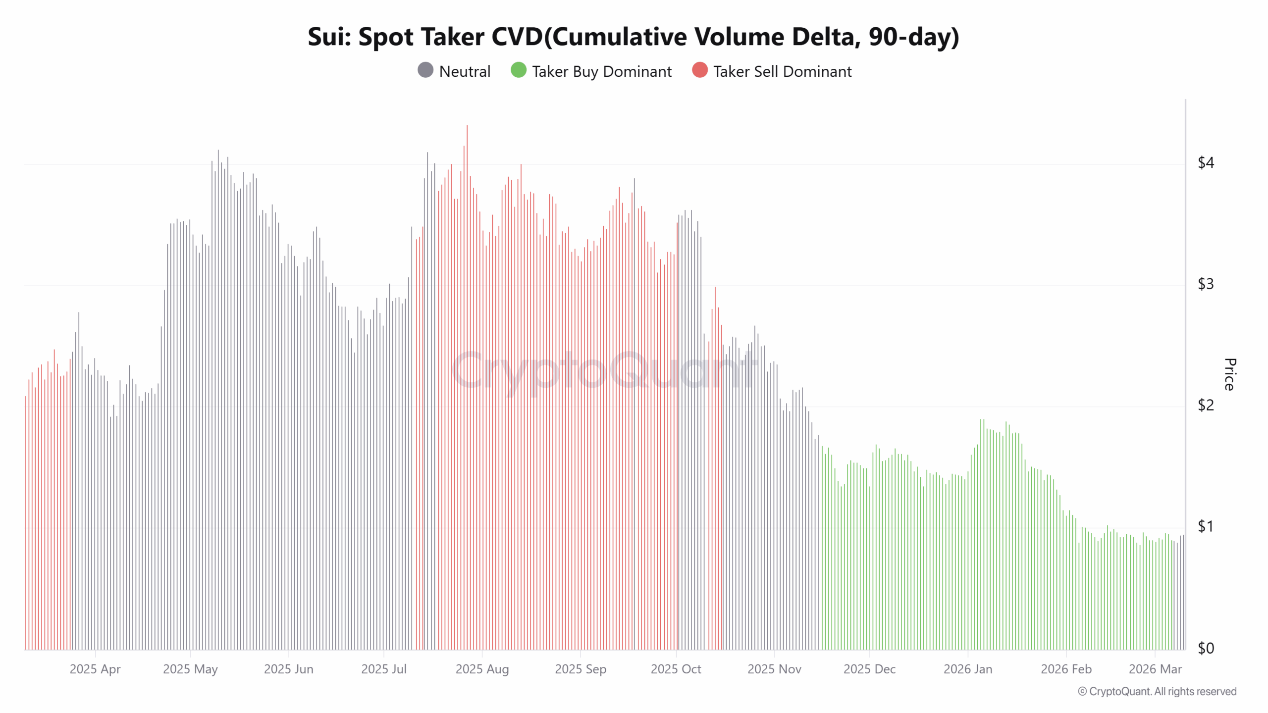 Moreover, the 3-month spot taker CVD shifted from taker buyer-dominated to neutral. The falling cumulative market orders to buy SUI were not new, but have been ongoing for months.