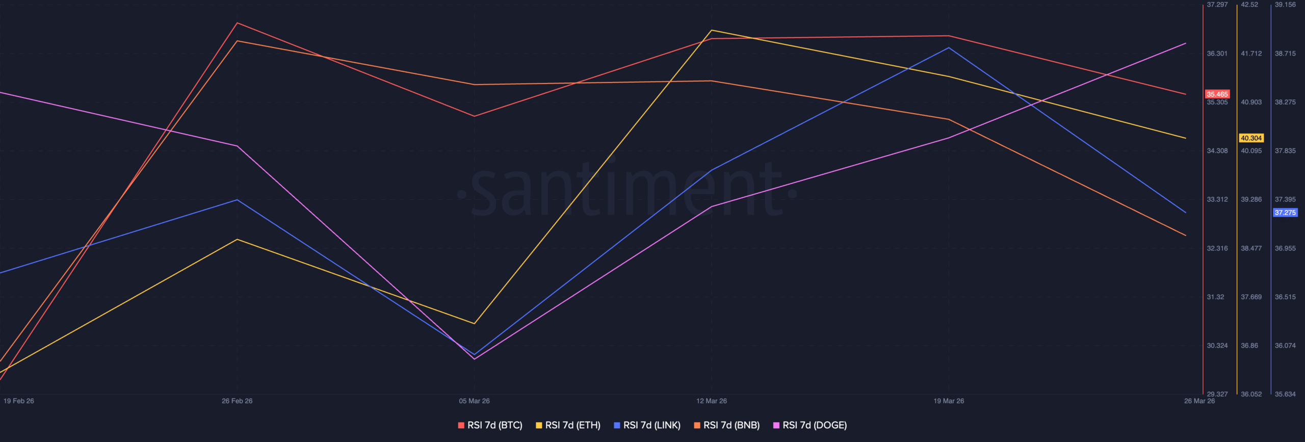 But the RSI of all the tokens, including Bitcoin, lying below the 50-level mark, aka the neutral level, suggests that the overall market sentiment is in the sellers’ hands.