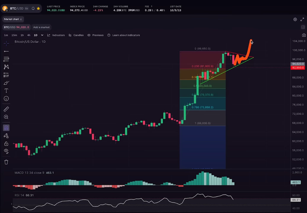 “There’s a lot of demand for Bitcoin and if we hold this level [ascending trendline], I think that means we might just kind of settle up going into Thanksgiving. Maybe one more test down after Thanksgiving, maybe not.