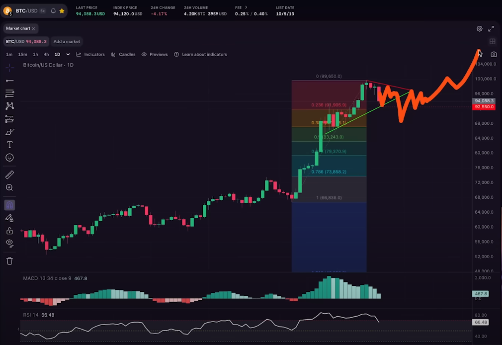 “If we are unable to maintain this trend line and we dip maybe one more time to the 0.382 Fibonacci [retracement level] which is like $87,500, well then we would probably have $100,000 maybe at the end of December or going into the New Year. Those are the two scenarios that I find likely.”