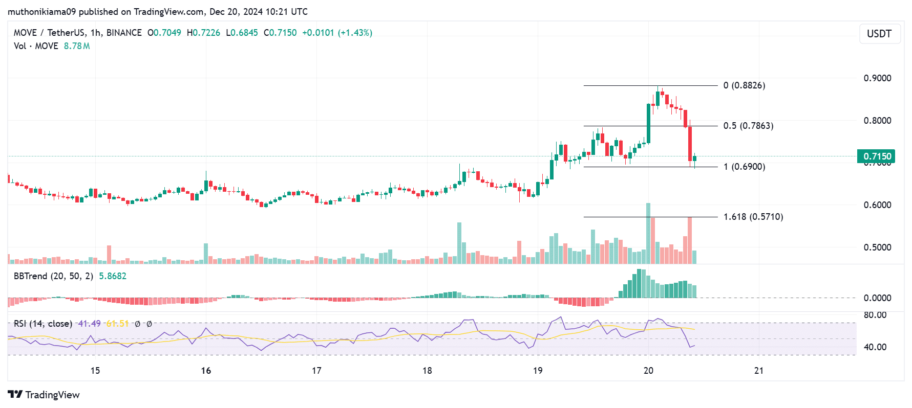On the other hand, if the bearish trends persist and buyers fail to step in, MOVE could drop to a crucial support level at the 1.618 Fibonacci level ($0.57).