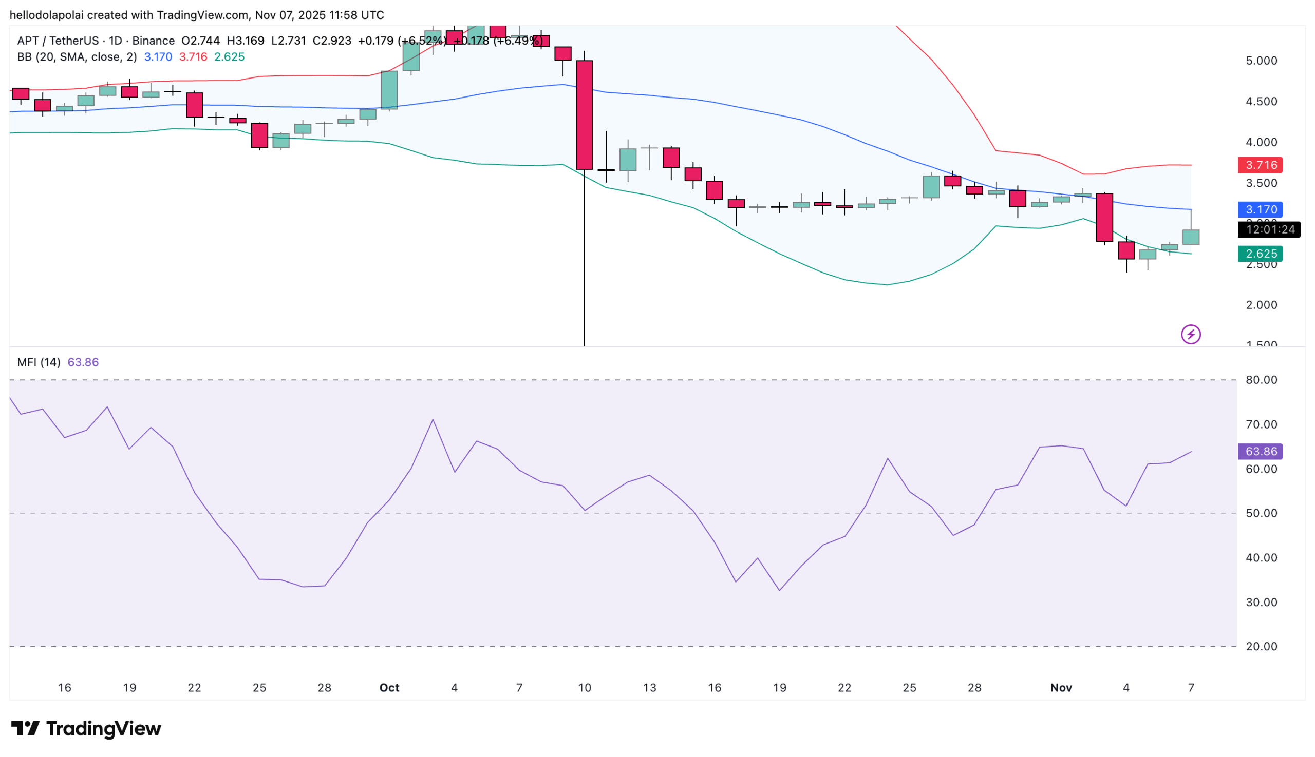 Such a breakout could mark a significant price move, potentially pushing APT beyond the $4 threshold and setting a new local high.