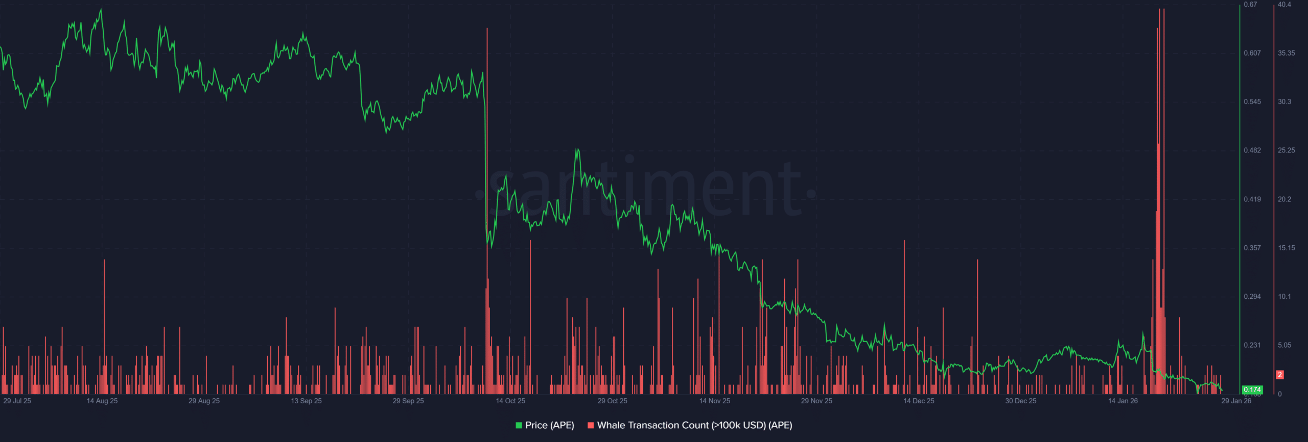 Wallets holding 1–10 million APE declined from 175 to 166, confirming early distribution instead of strategic buildup.