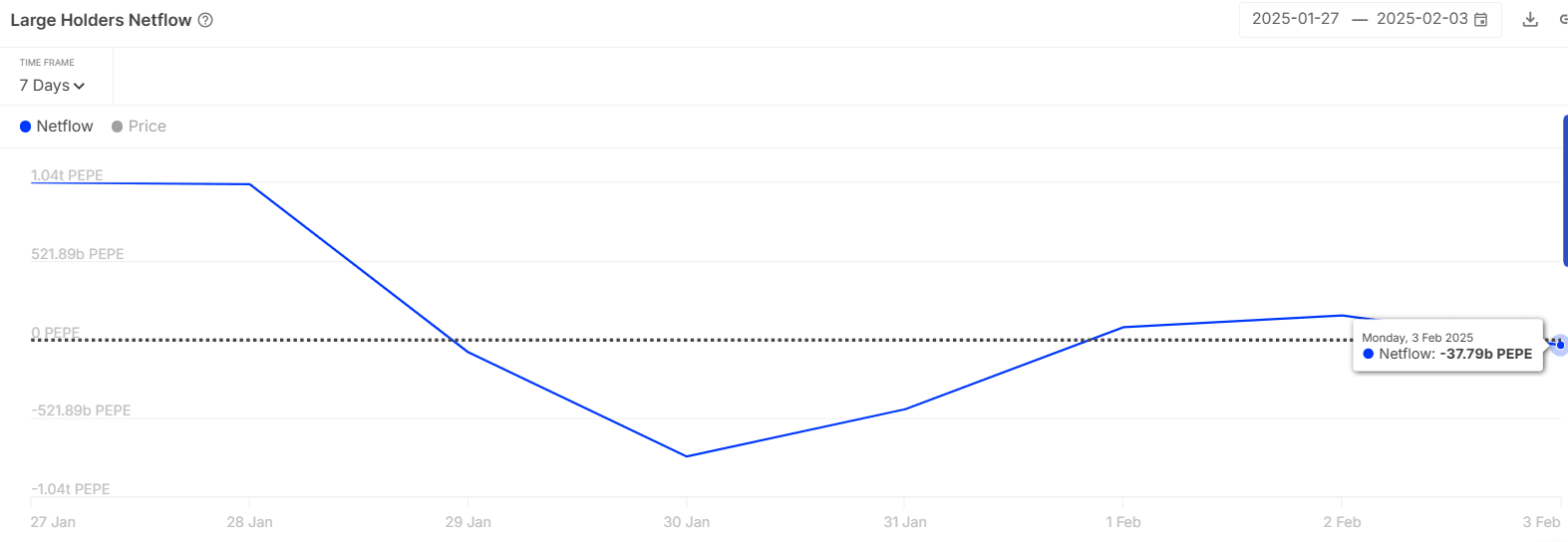 Large holder netflows have dropped significantly from 159 billion to -37 billion, suggesting that whales sold 196 billion PEPE within 24 hours.