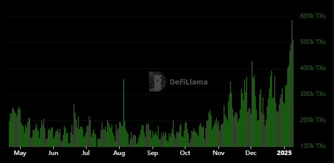 Daily transactions soared to a 10-month high of 586,650 transactions on the 8th of January, a confirmation of healthy growth in terms of network utility.