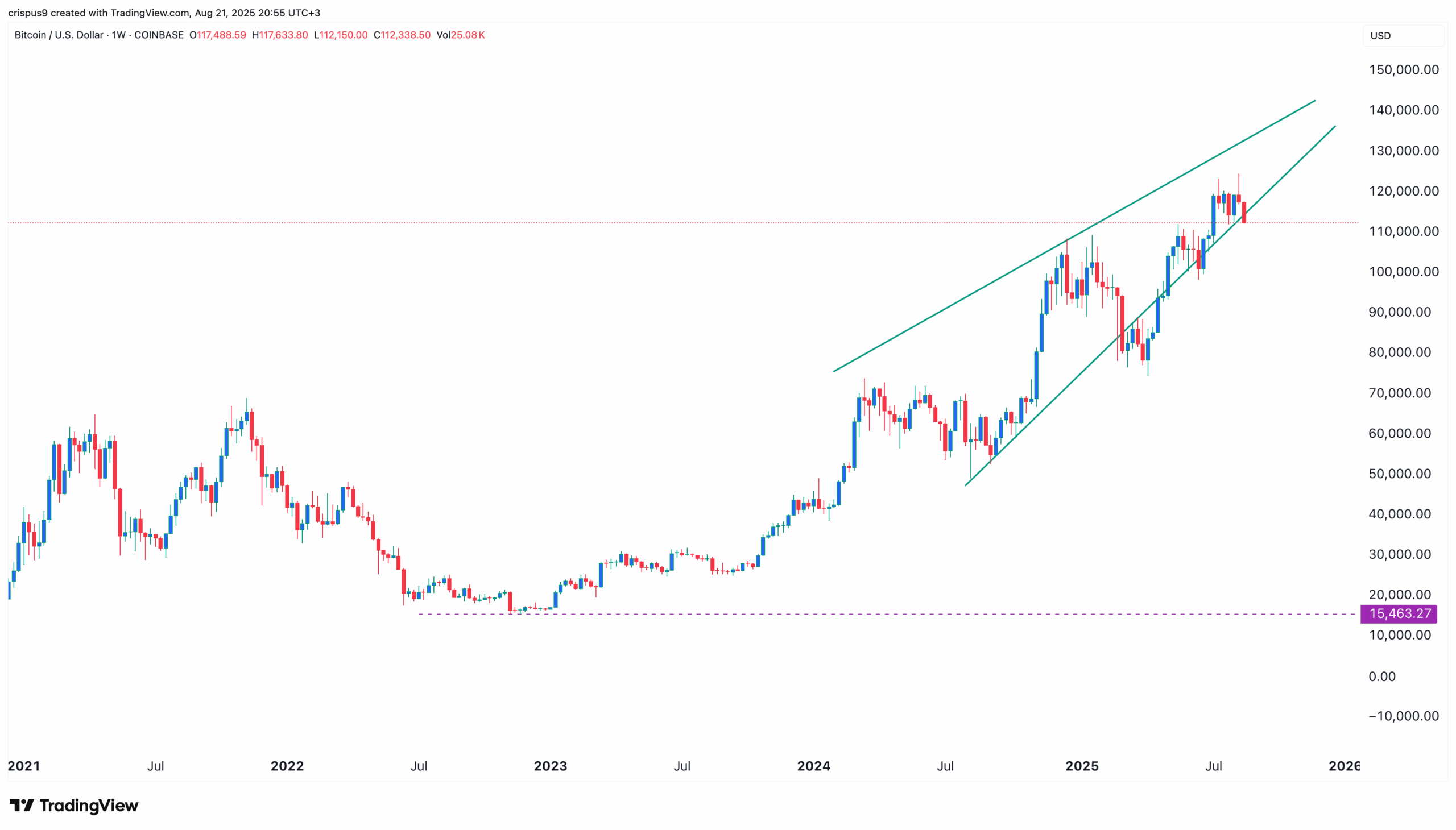 Bitcoin (BTC) dropped to $112,000, well below its all-time high of $124,200. The global crypto market capitalization slipped by 1.45% to $3.8 trillion, with altcoins such as Mantle, Virtuals Protocol, Official Trump, and Ethena among the top laggards.