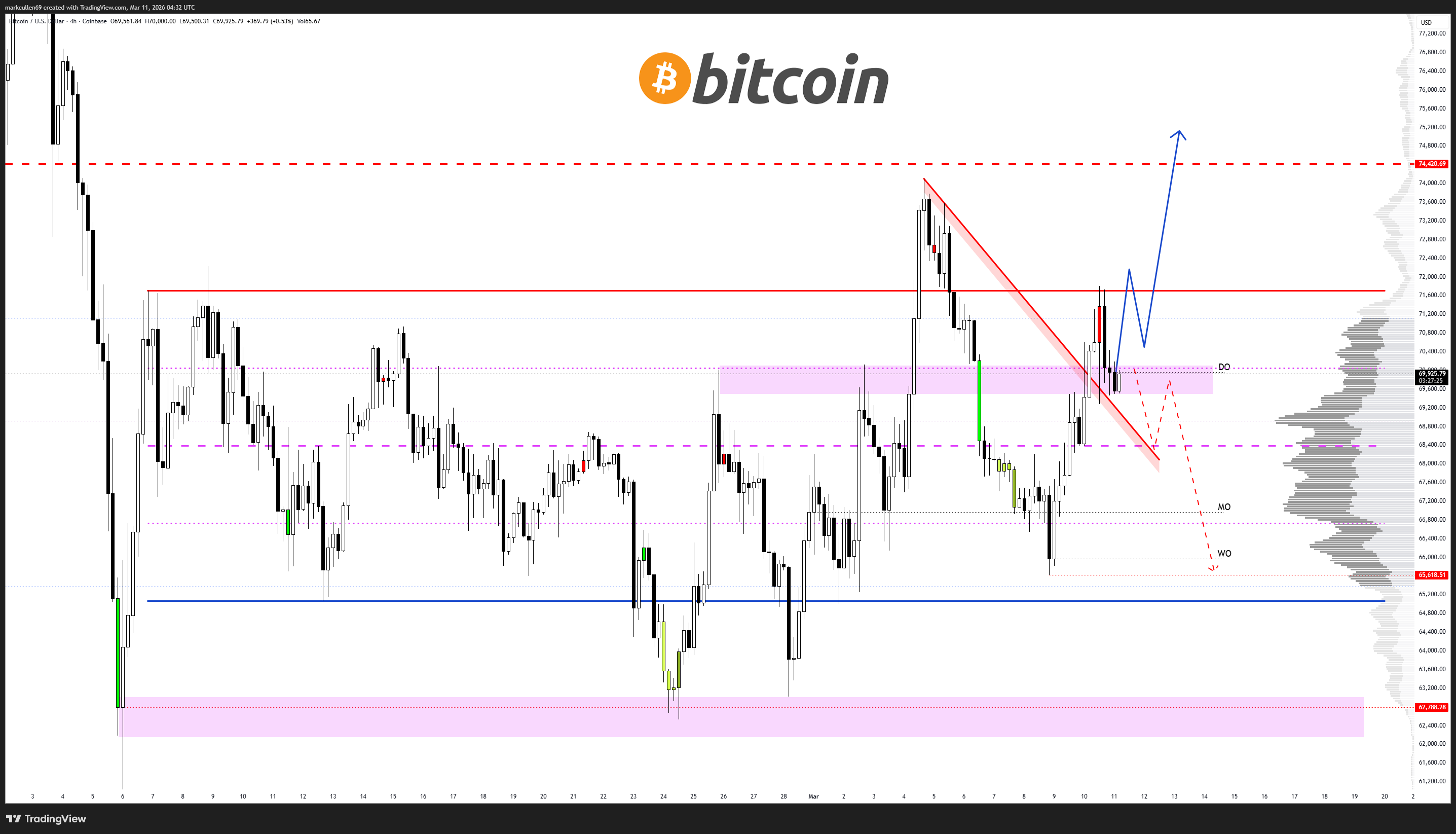 For trader and analyst Mark Cullen, meanwhile, there was reason to hope for a move higher if bulls could cement $70,000 as support.