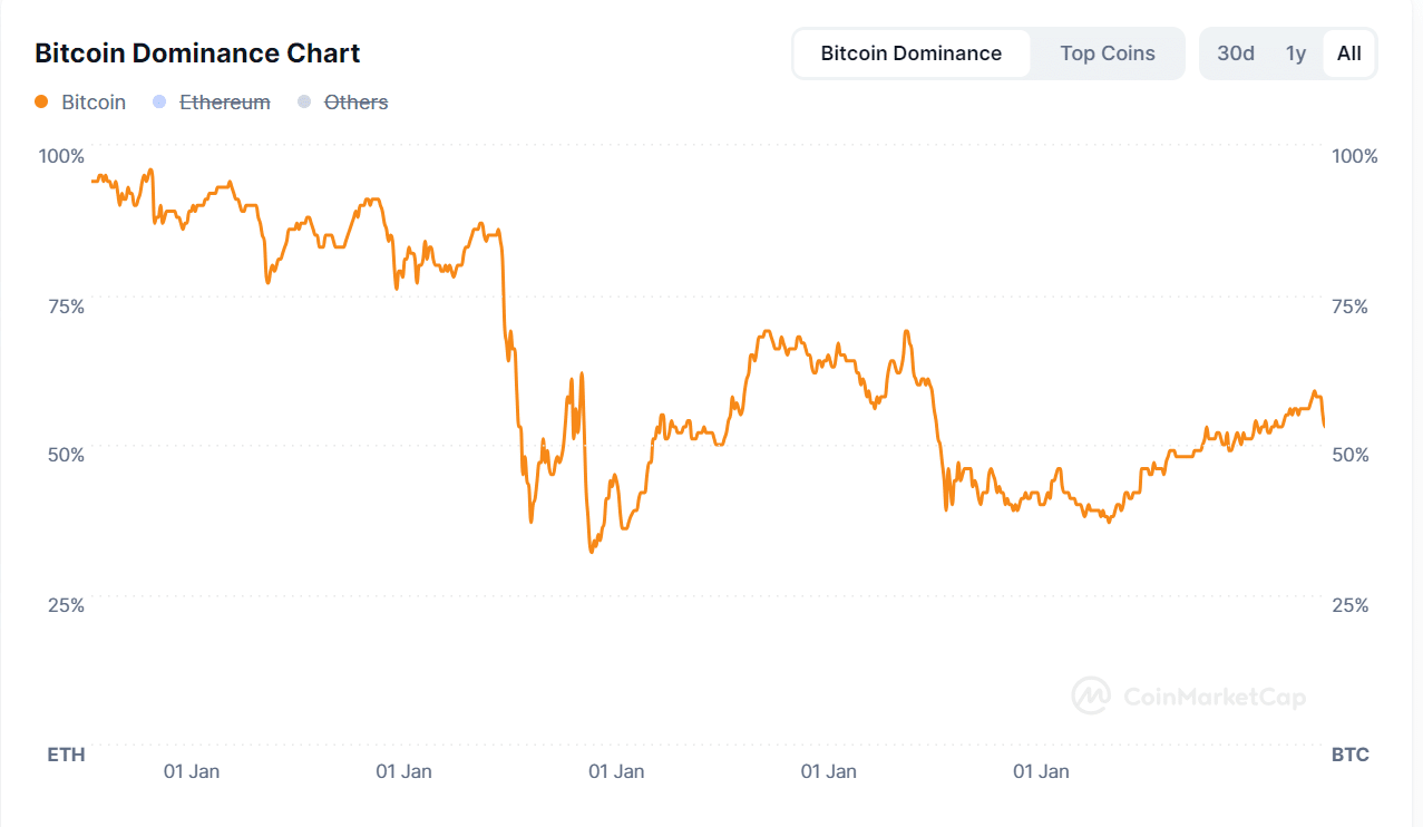 Therefore, closely monitoring Bitcoin dominance will provide insight into market trends and any possible changes in dominance dynamics.