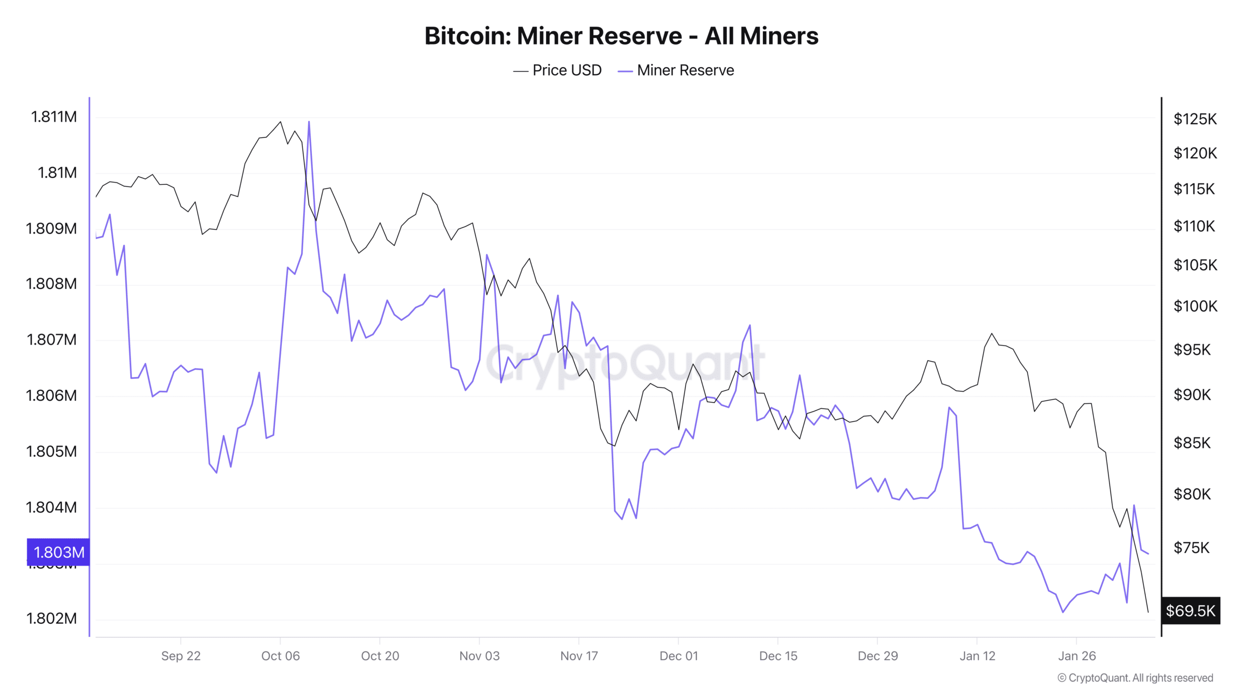 The ongoing sell-off is not confined to short-term holders alone. Miners are also contributing to the growing bearish pressure.