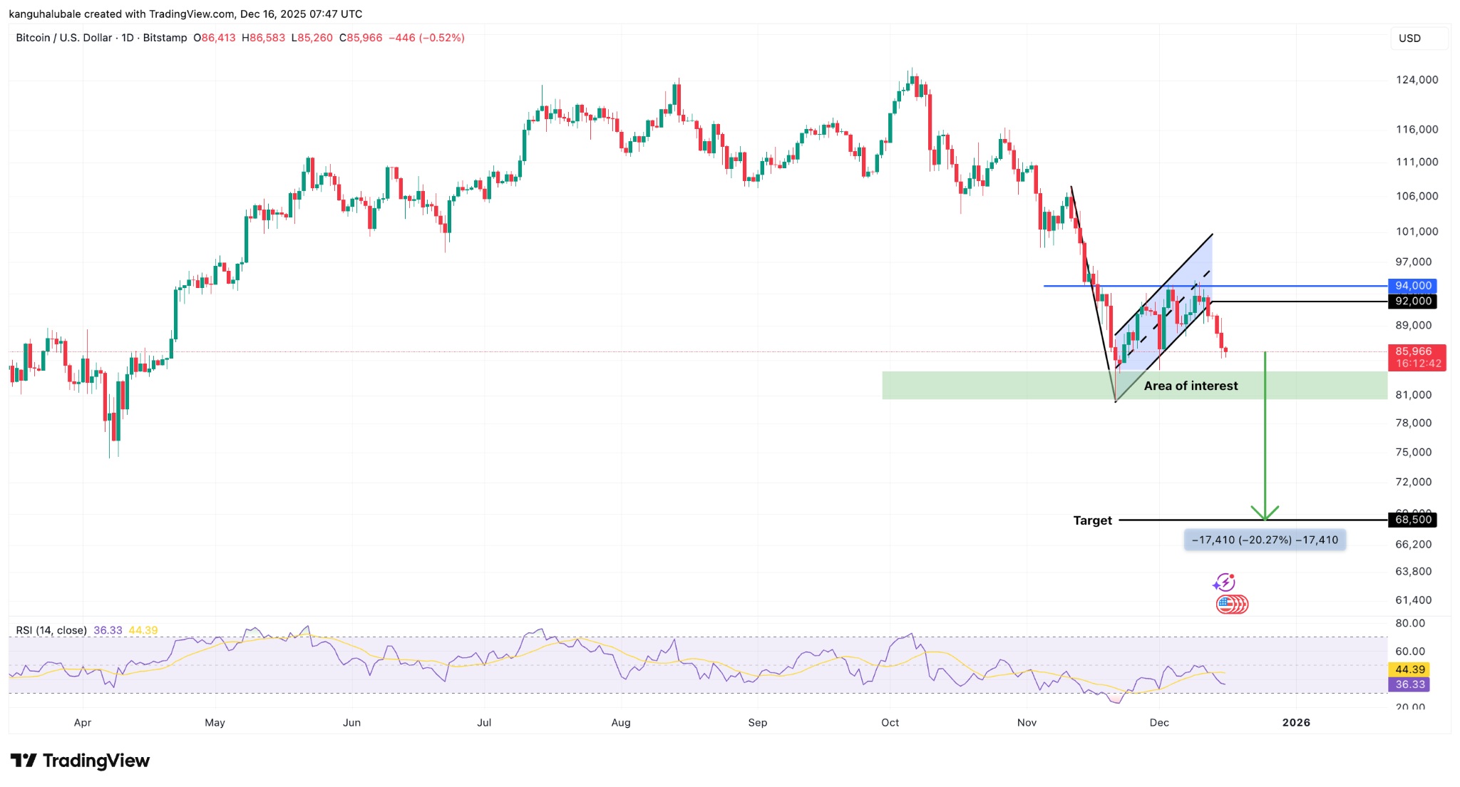 Bitcoin’s technical structure weakened after it lost support from the 50-week moving average (MA) and the yearly open at $93,300.