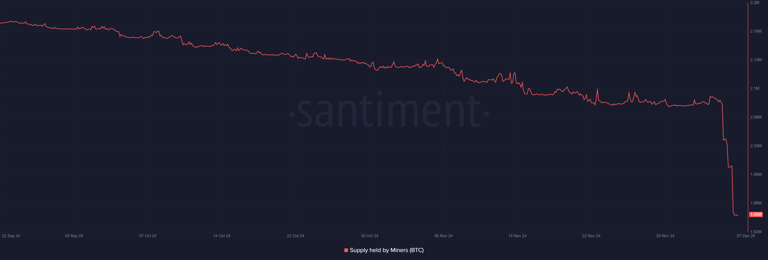 The recent dip in miner balances is the most significant since February, but it has not yet directly affected Bitcoin’s price momentum. An analysis of the miner supply on Santiment revealed that on 5 December, it had a reading of over 2 million.