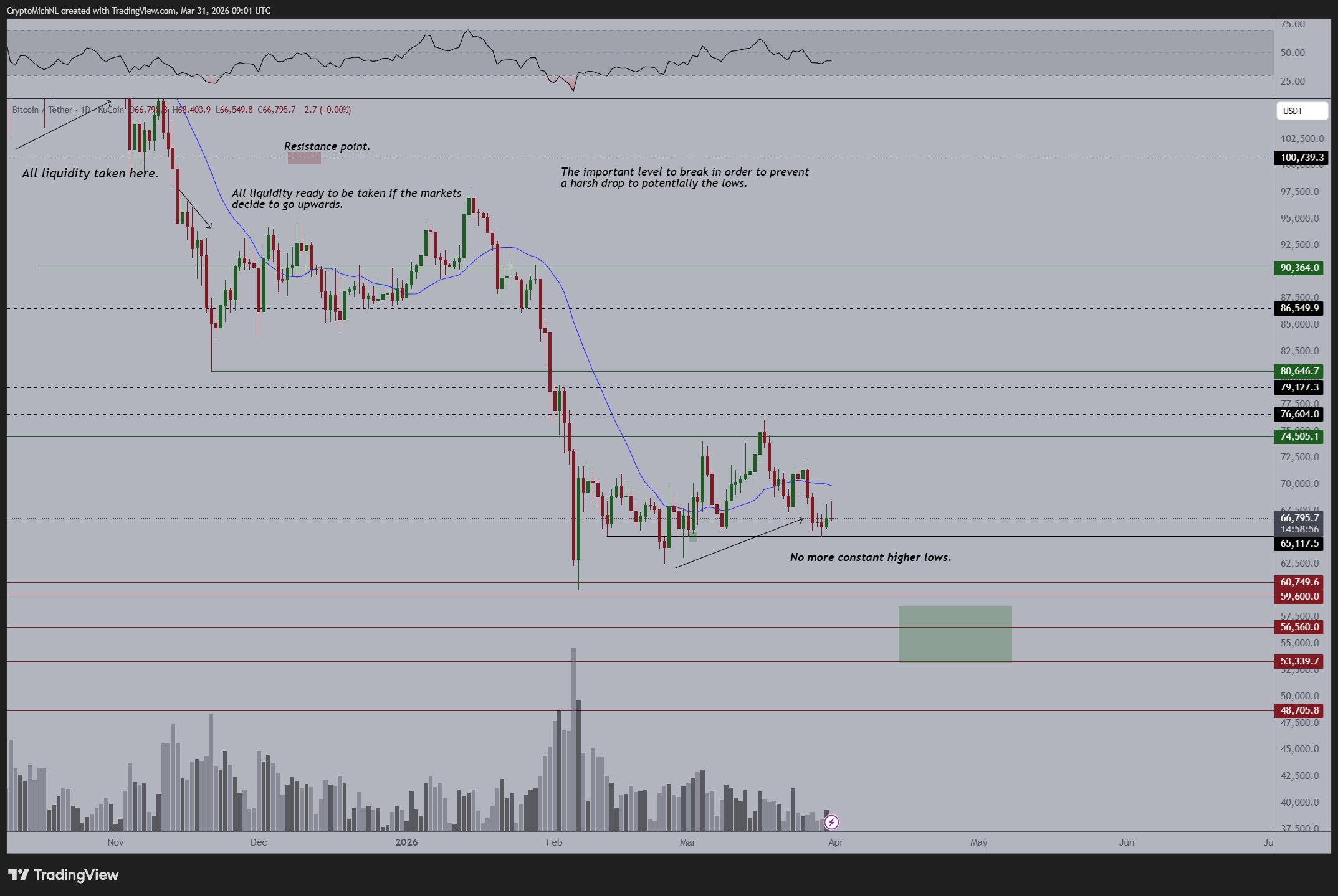 “Trend is also still downwards, so I would suggest that early April we’ll be sweeping the lows to get that liquidity going and return back upwards after that.”
