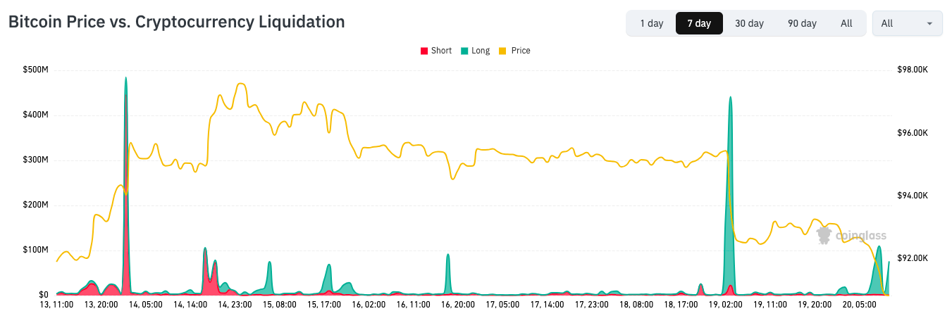 Exchange order-book data showed signs of stress on the day, with liquidations hitting $360 million in the 24 hours to the time of writing, per data from CoinGlass.