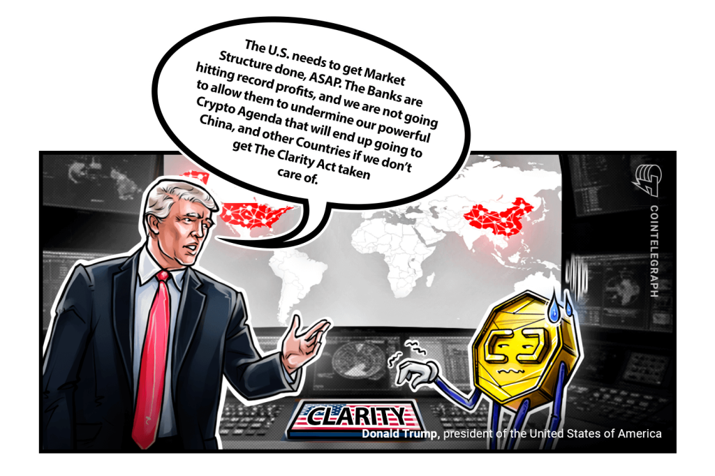 “The U.S. needs to get Market Structure done, ASAP. The Banks are hitting record profits, and we are not going to allow them to undermine our powerful Crypto Agenda that will end up going to China, and other Countries if we don’t get The Clarity Act taken care of.”