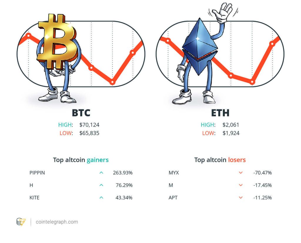 Among the biggest 100 cryptocurrencies, the top three altcoin winners of the week are Humanity Protocol (H) at 38.42%, Pi (PI) at 36.21% and OKB (OKB) at 28.32%The top three altcoin losers of the week are pippin (PIPPIN) at 44.32%, Decred (DCR) at 12.32% and World Liberty Financial (WLFI) at 10.93%. For more info on crypto prices, make sure to read Cointelegraph’s market analysis.
