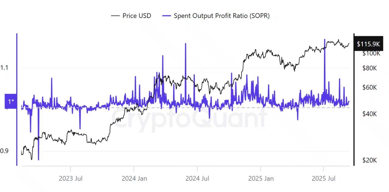Profit-takers were quick on the draw, confirmed by a jump in SOPR to 1.17.