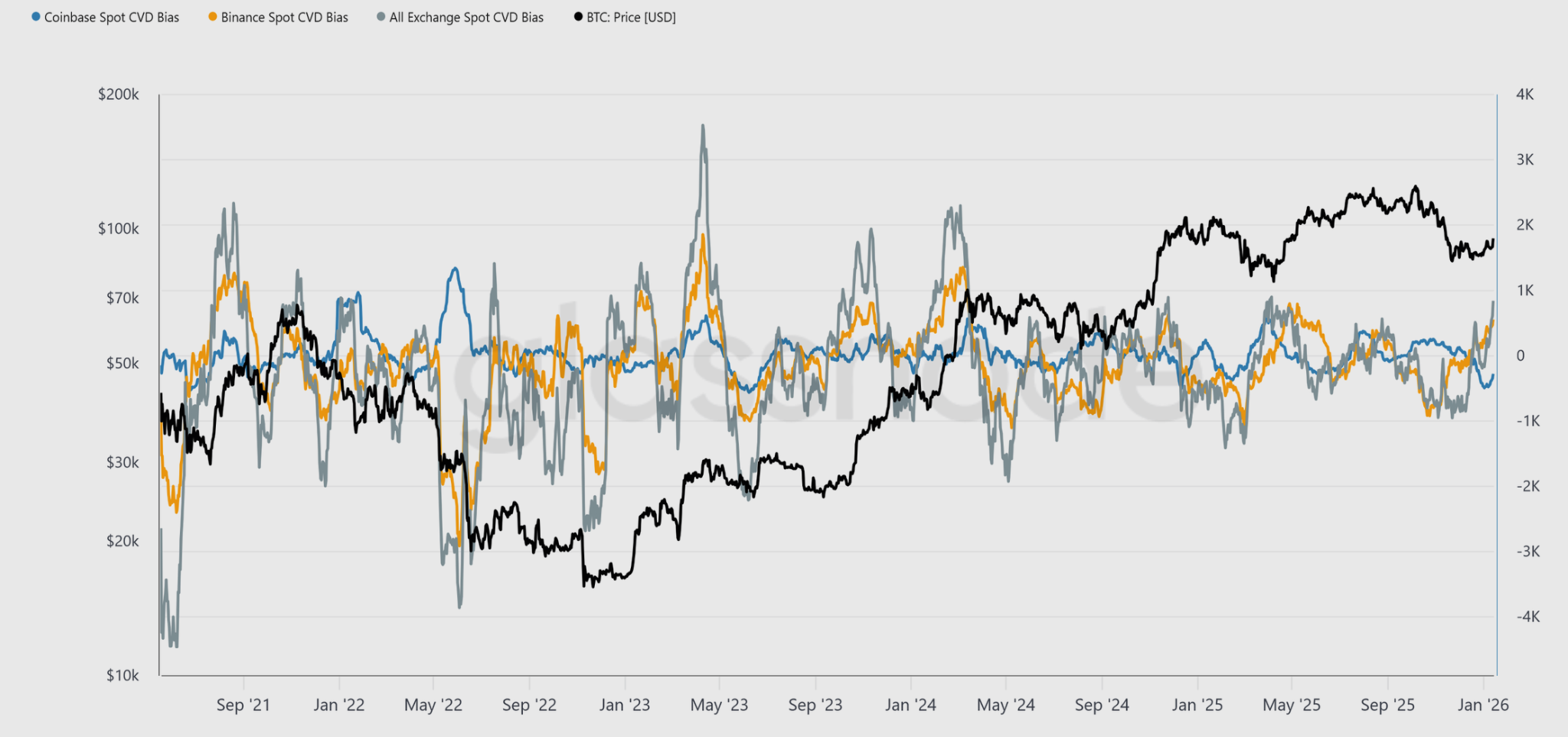 Bitcoin spot CVD bias. Source: Glassnode
