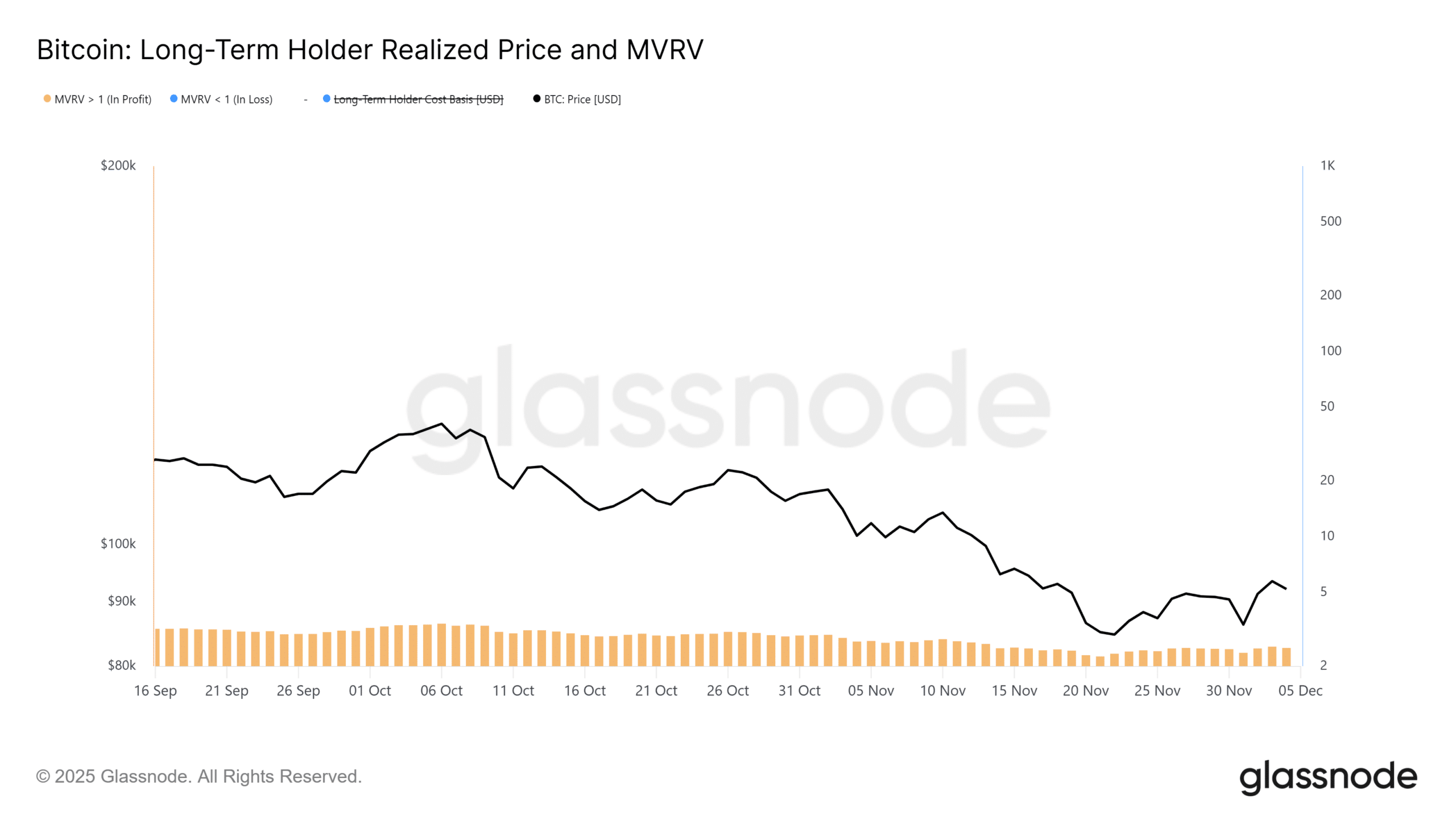Glassnode’s data shows exactly why. Their risk indicators reveal that since mid-November, BTC has slipped below the 0.75 MVRV quantile, essentially signaling that around 25% of the supply is now sitting at an unrealized loss.