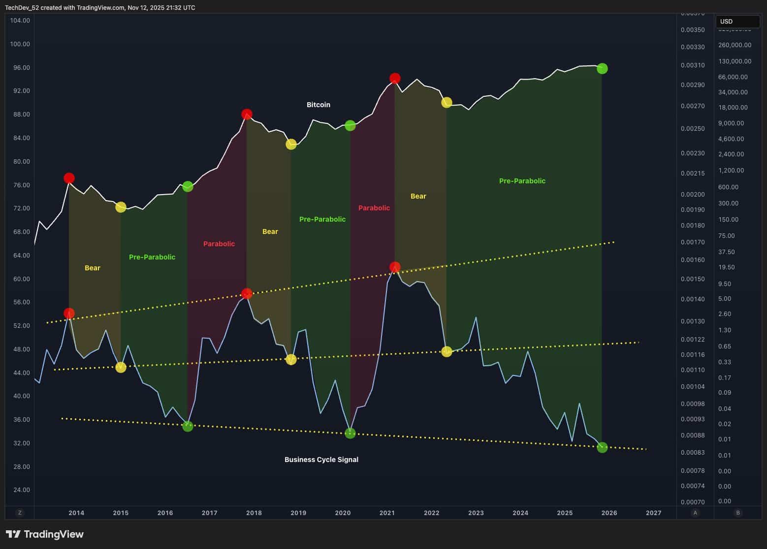 The pre-parabolic phase is a period when the asset builds momentum ahead of a major rally. According to chart data, Bitcoin has been in this phase since 2022. This indicator has historically predicted bull and bear markets with strong accuracy.