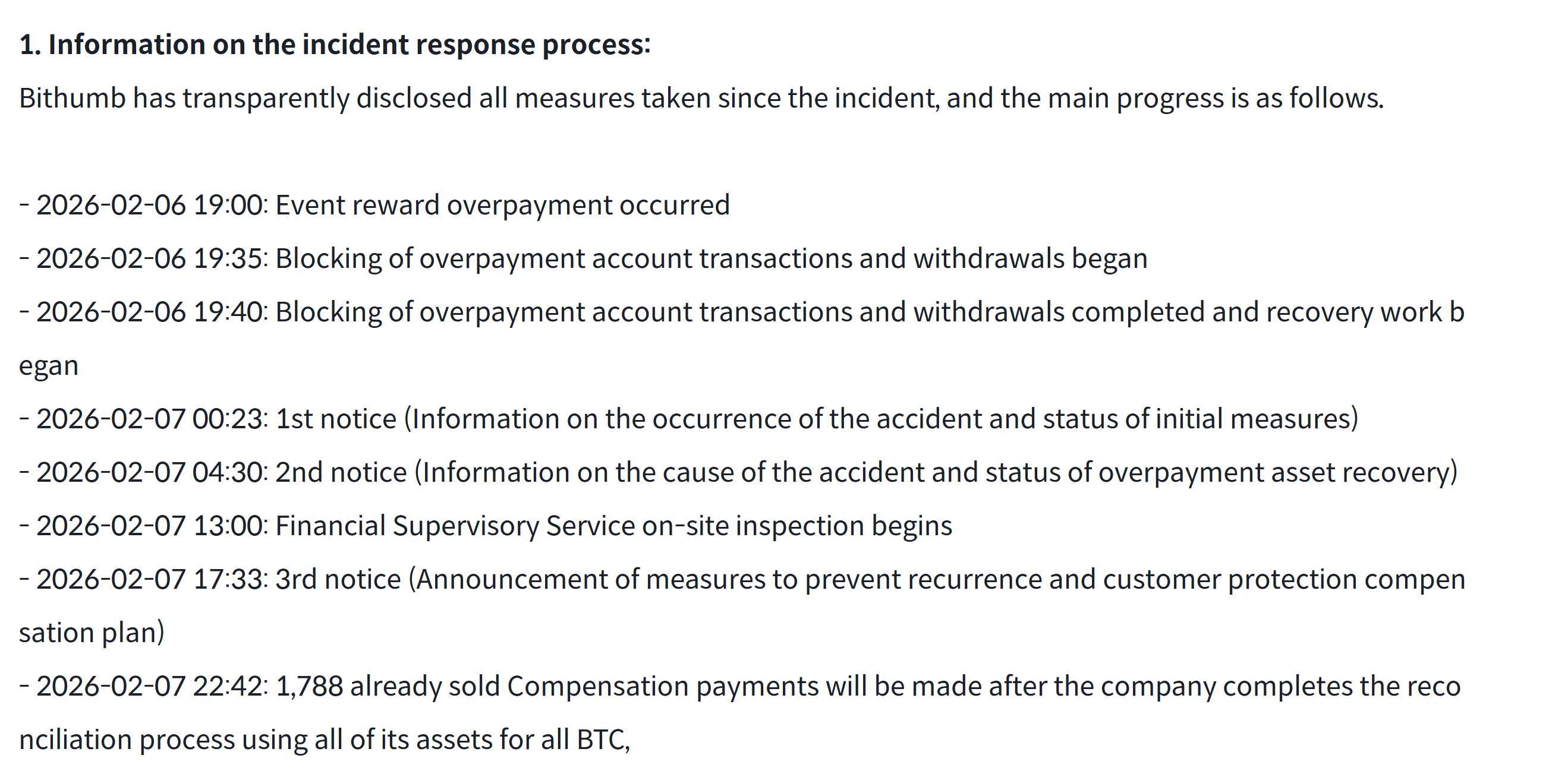 According to Bithumb, most of the excess Bitcoin was retrieved directly from accounts, while the portion already liquidated in the market required reimbursement from corporate reserves.