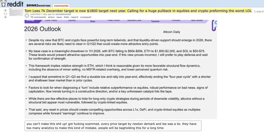 Despite the concerns, Ether’s current decline remains in line with analysis from Tom Lee, the chairman of BitMine and the co-founder of Fundstrat Global Advisors.