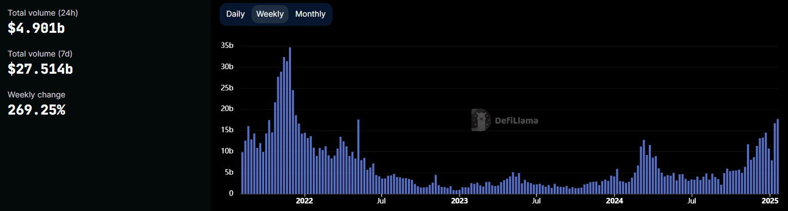 Data from DeFiLlama showed that the weekly DEX volumes on BNB Chain have surged to $17.74 billion, marking the highest level in three years.