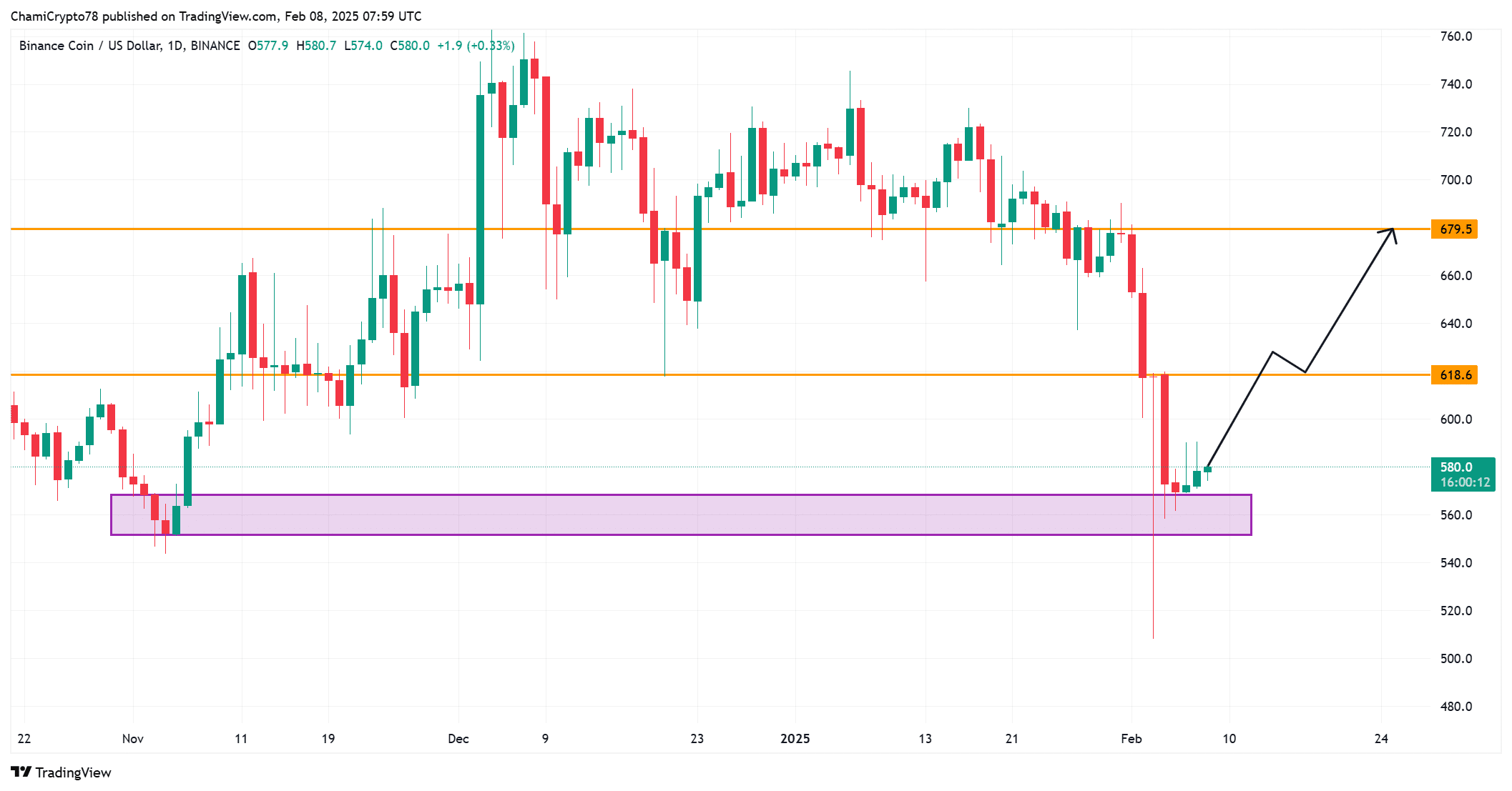 • BNB held on to key support around $560, eyeing a breakout above $618 for further gains