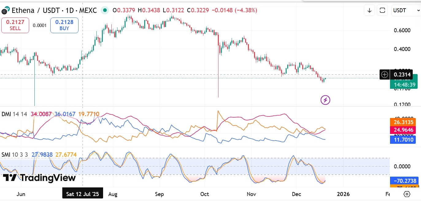 While demand has lifted ENA on the daily charts, its long‑term structure remains fragile. If Ethena Labs’ deposits are sold, this weakness could drive ENA into deeper losses.