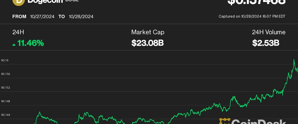Dogecoin Jumps 10%, Outperforming on Trump Popularity as Bitcoin Nears $70K