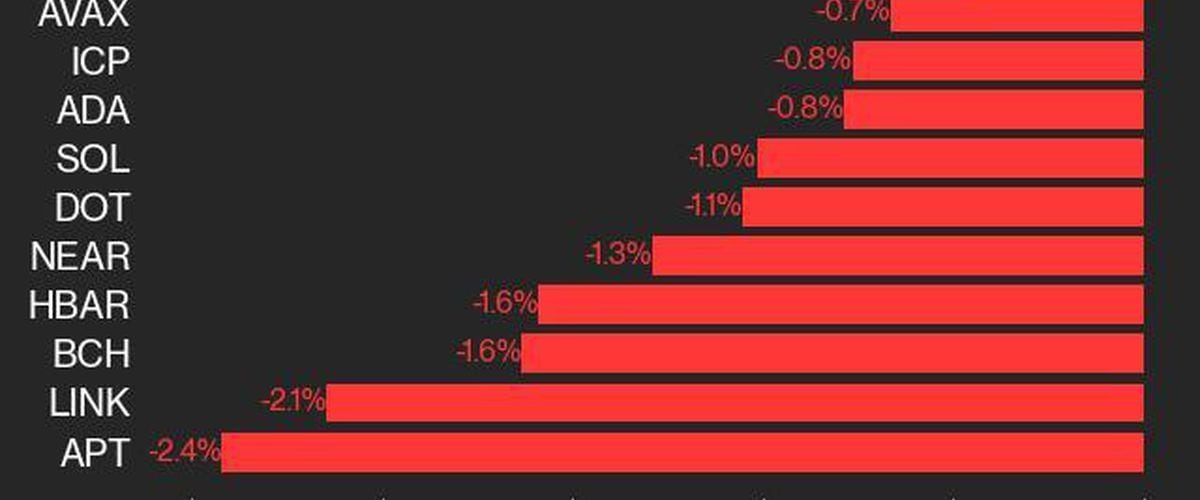 CoinDesk 20 Performance Update: APT Drops 2.4%, Leading Index Lower