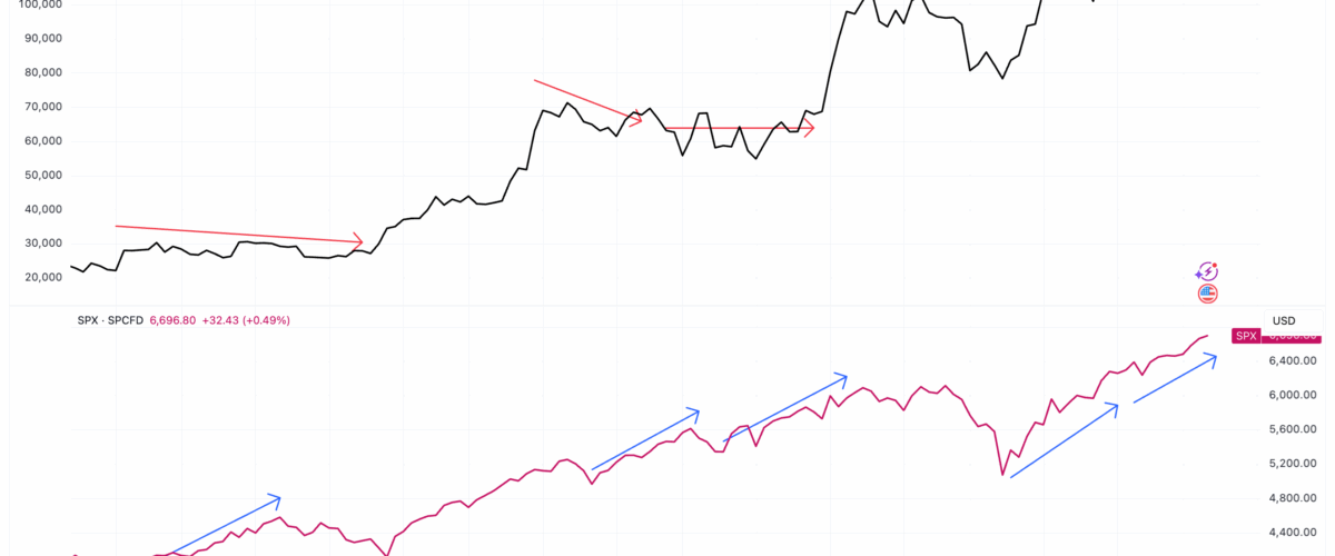 History Suggests Bitcoin Likely to Catch Up as it Again Lags S&P 500