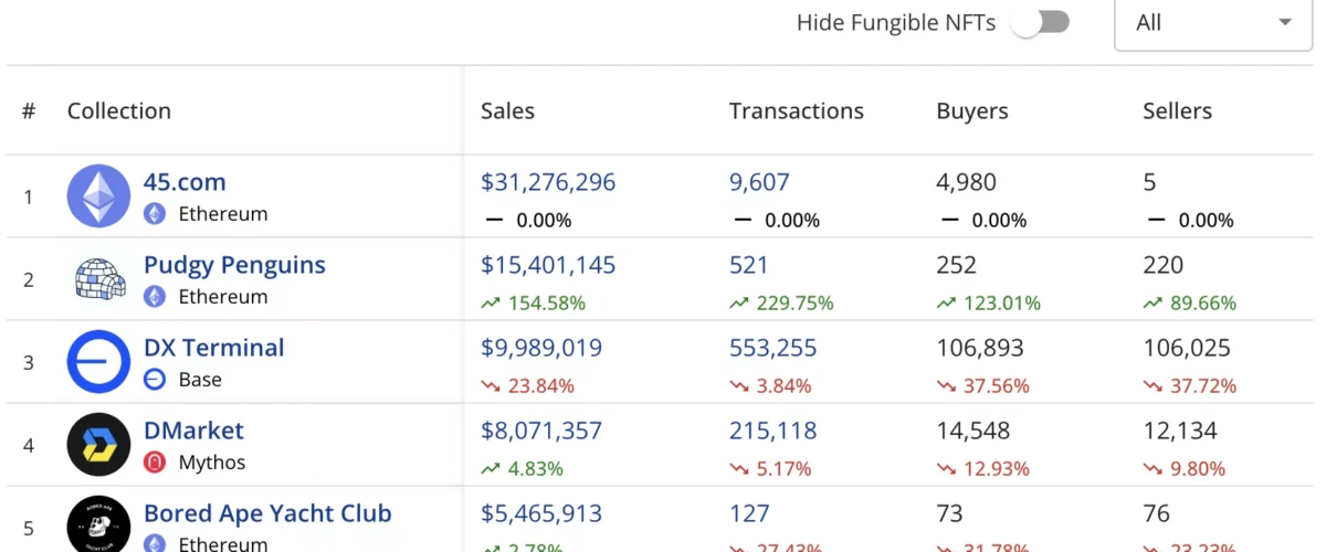 NFT sales spike 6% to $161.7m, Pudgy Penguins sales jump 165%
