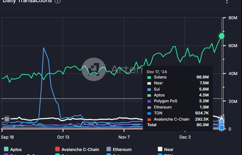 Solana surpasses rivals with record-breaking 66.9 million daily transactions