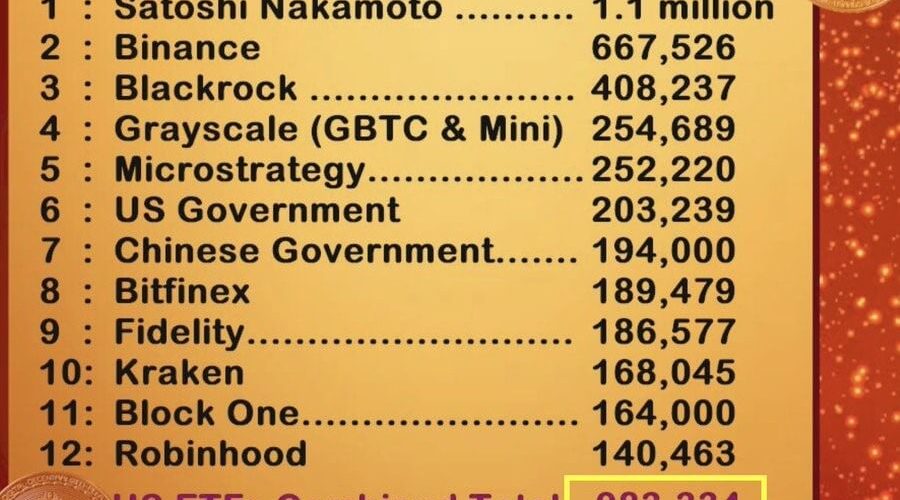 Spot Bitcoin ETFs on track to overtak Satoshi Nakamoto’s BTC holdings by year-end