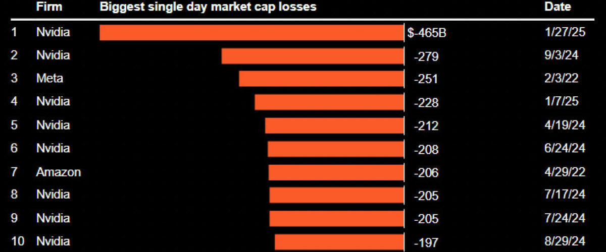 Nvidia’s single-day $465B loss surpasses combined market caps of XRP, Tether and Solana