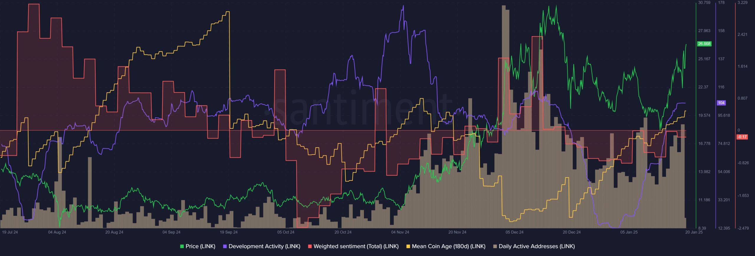 During the holiday season, LINK’s development activity dropped significantly but remained respectable compared to other large-cap altcoins. In the first week of January, dev activity began to recover and