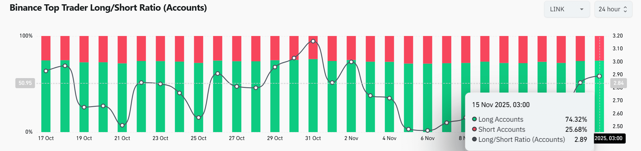 LINK top traders tilt heavily long