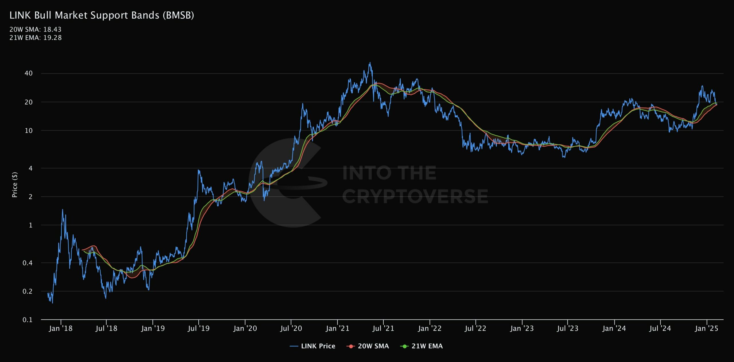 If LINK maintains support above this band, it could confirm its uptrend, attracting more buyers, with potential targets above $25 in the coming weeks.