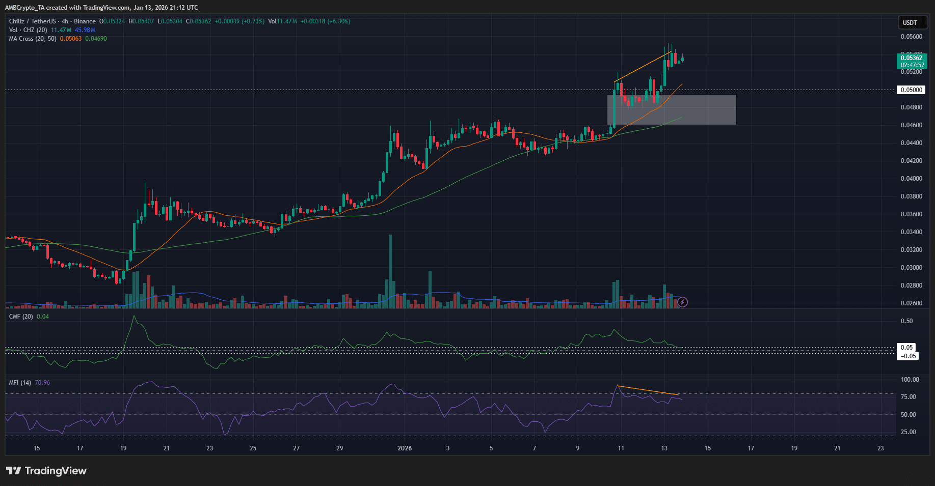 Chiliz bulls have made notable progress in recent weeks. The 3-day timeframe showed that the $0.05 resistance zone, which CHZ had not managed to breach for most of 2025, was finally in bullish control at press time.