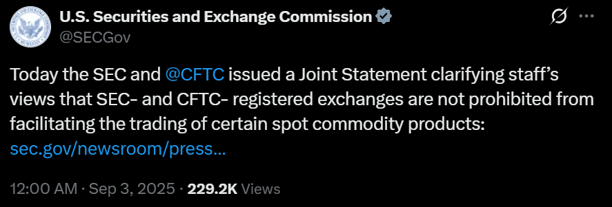 The joint guidance by the SEC and CFTC will expand spot crypto trading across traditional exchanges and brokerages.