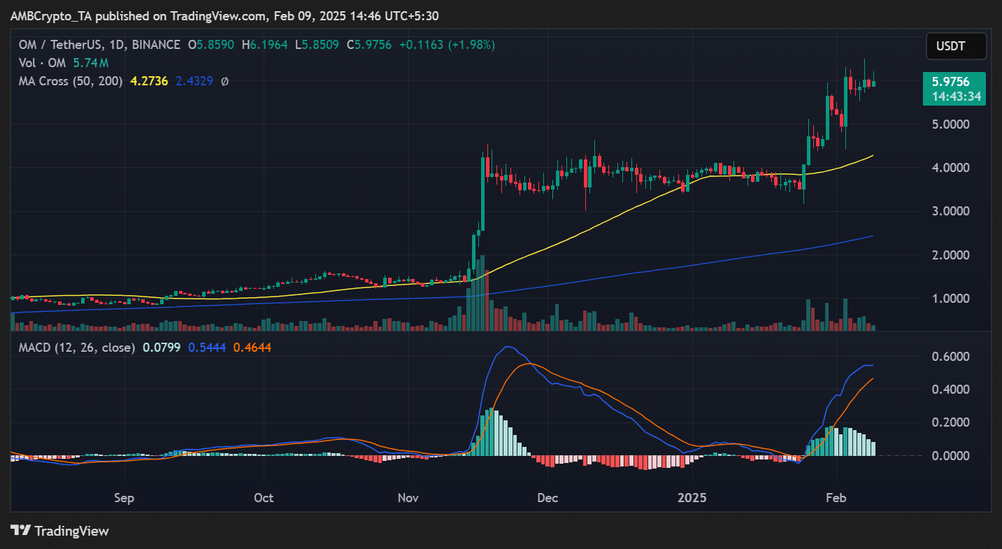 Trading volume has been particularly noteworthy, reaching 5.74M OM, suggesting strong institutional interest in the rally.