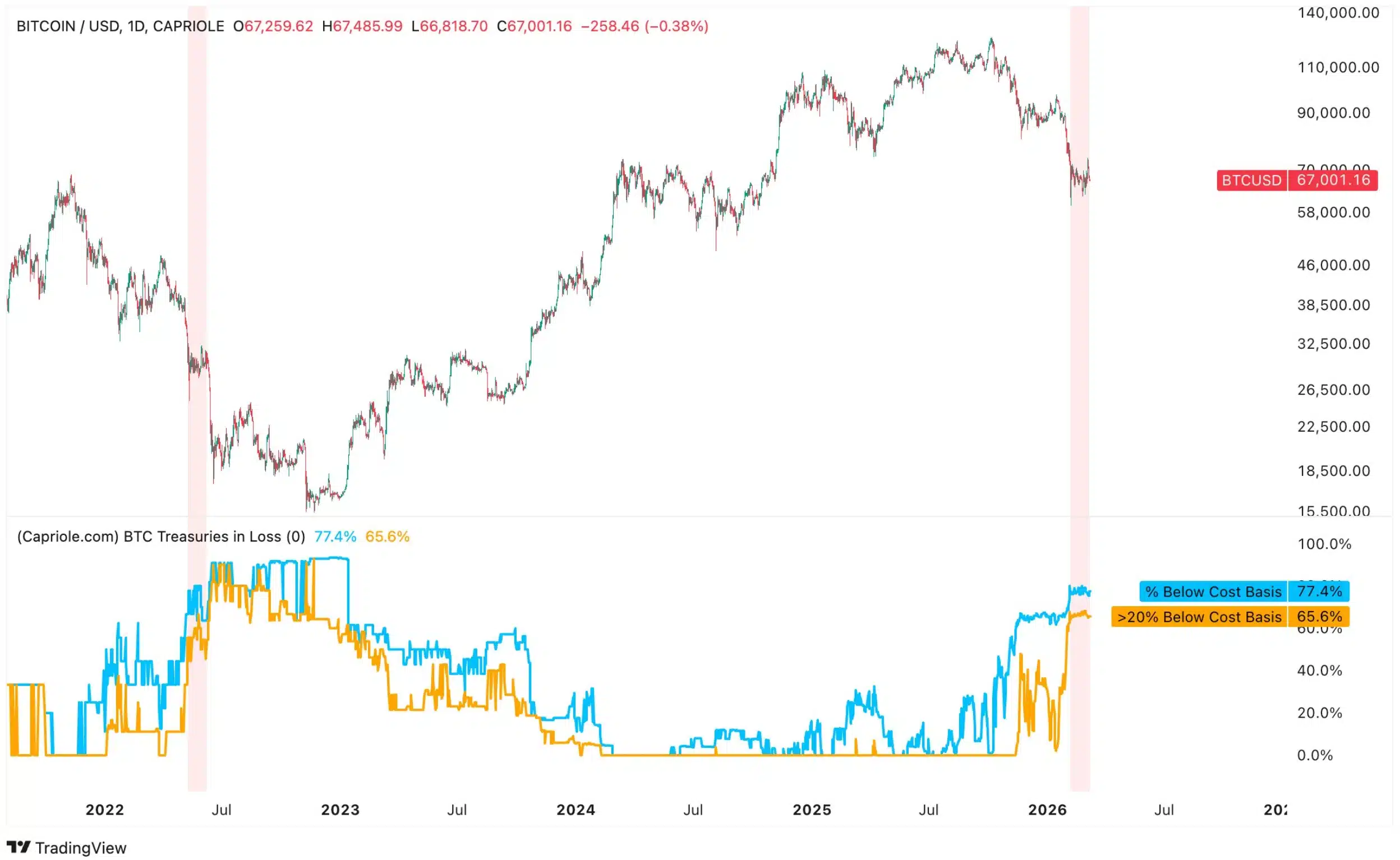 “77% of Bitcoin Treasury Companies are underwater on their Bitcoin buys. The last time this happened was May 2022.”