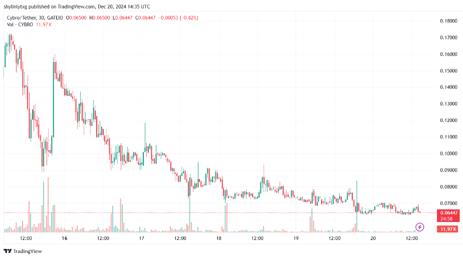 Currently priced at 0.06445, CYBRO’s trading range shows signs of consolidation. It has a support forming near $0.063 and resistance visible at around $0.07. If the price holds strong above the support level, there could be a breakout to $0.10. But if the support fails, there could be further declines. Nonetheless, analysts are optimistic and see a quick recovery in the coming days.