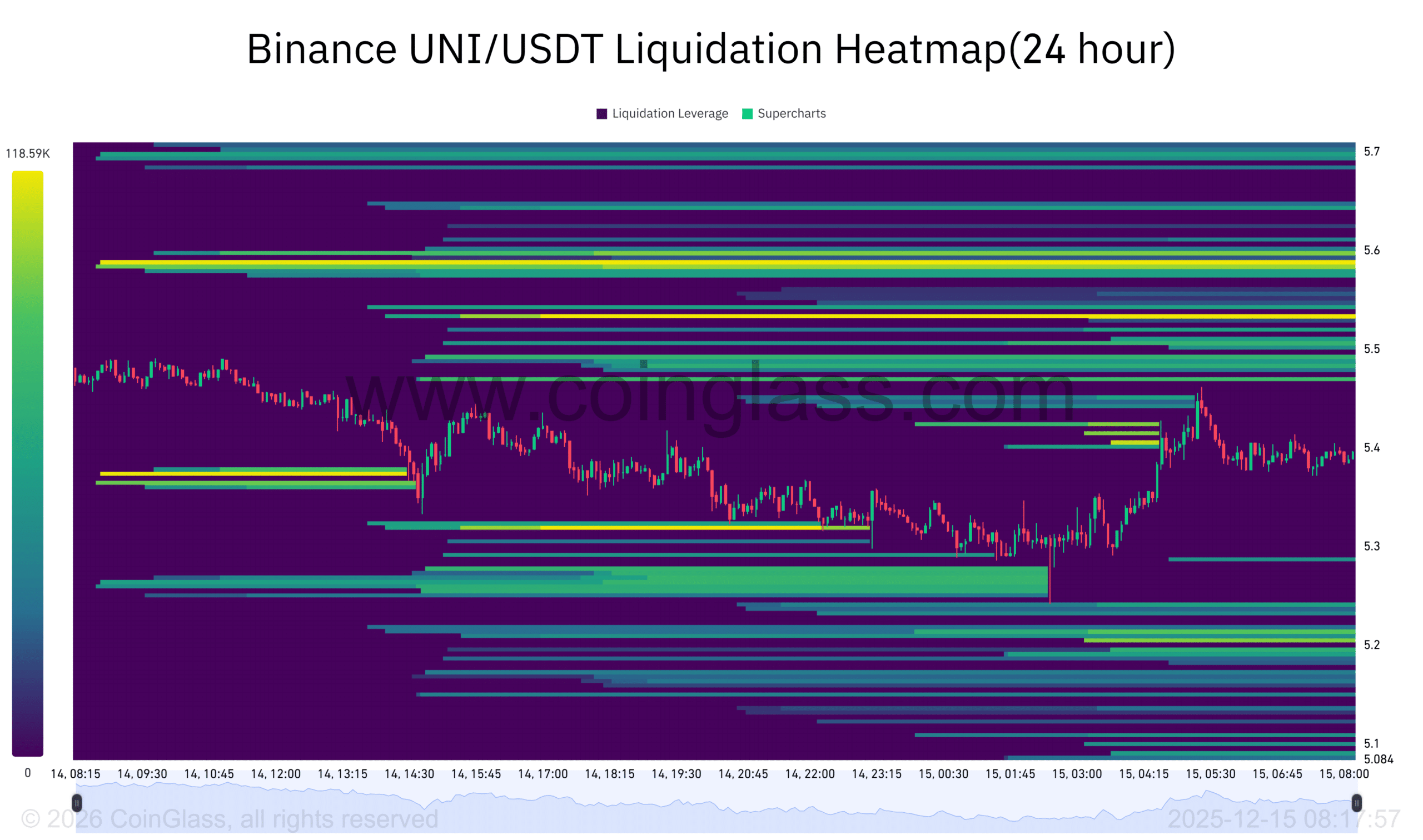 This left traders focused on the $5.6 liquidity band. A reclaim could flip short-term control and open room toward $6 as shorts reacted. Failure to reclaim keeps downside risk active, with deeper supports back in play.