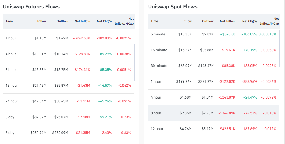 UNI supply continued leaving exchanges rather than entering them. That shift pointed to reduced immediate sell pressure despite the price remaining capped below resistance.