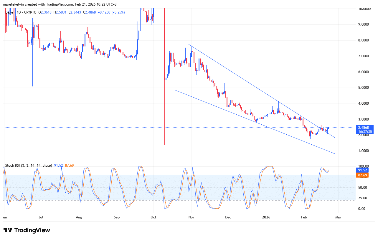 - DEXE climbed 15% as Spot Volume jumped 76% to $7.34 million, signaling renewed participation.